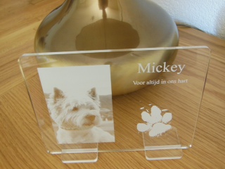 De glasplaat is voorzien van een metalen staander zodat deze overal neer te zetten is.